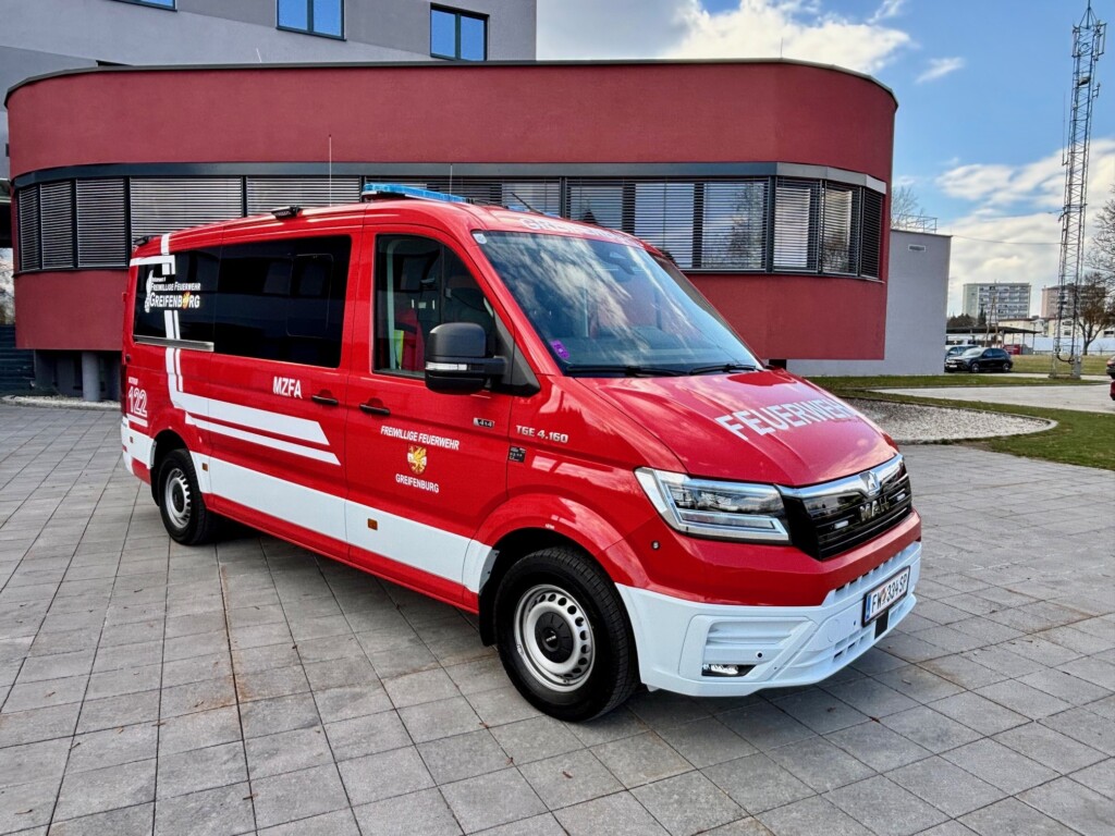 Das neue MZFA der FF Greifenburg wurde letzte Woche in Klagenfurt beim Landesfeuerwehrkommando in Empfang genommen und offiziell in Betrieb gestellt. Das Fahrzeug der Marke MAN dient als Mehrzweckfahrzeug vorrangig dem Mannschafts- und Gerätetransport. Die feierliche Segnung des Fahrzeuges findet im Mai statt.